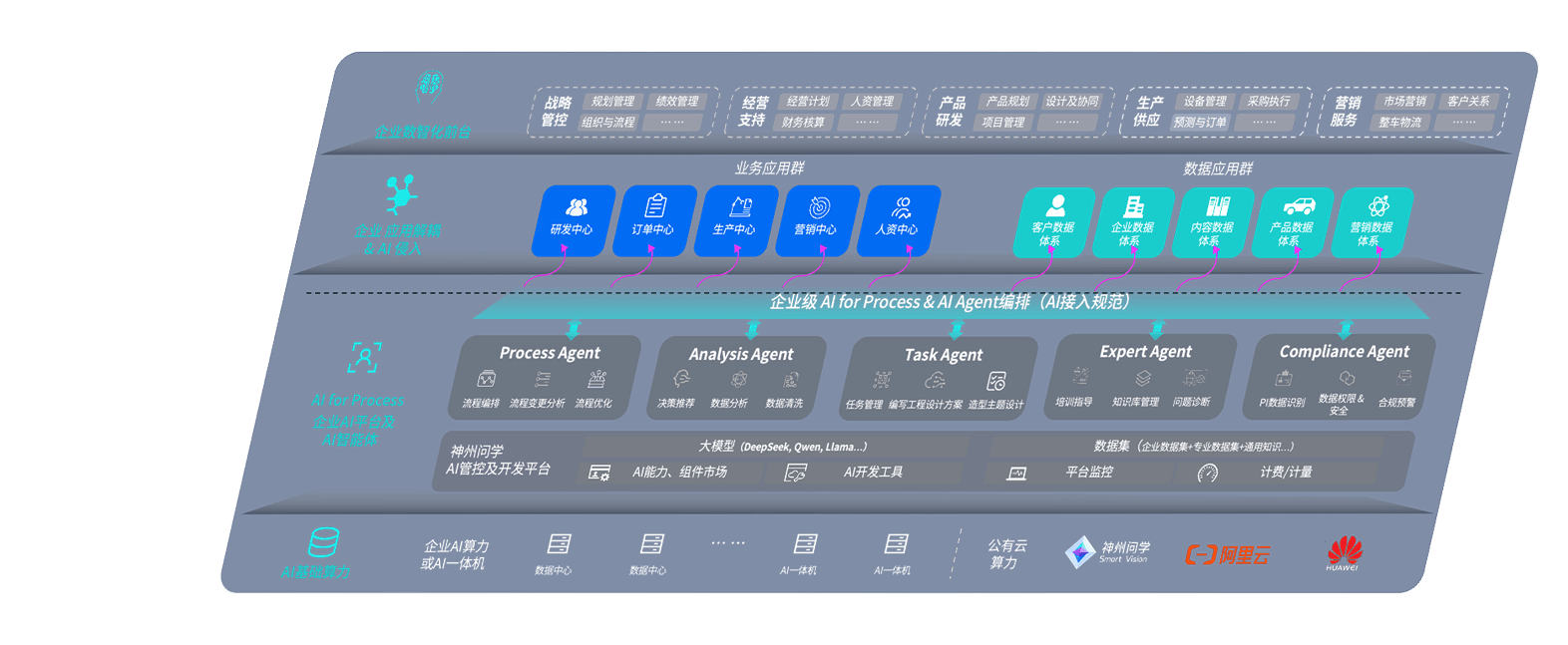 雀魂问学智车解决方案是一套基于AI技术的汽车行业智能化系统,,,覆盖从底层算力到顶层AI应用的全栈方案。。方案由算力层、、模型层和应用层组成:算力层,,,方案支持多种一体机配置,,,,具备云端灵活部署、、、、多云适配以及动态优化计算资源的能力;模型层,,,雀魂问学平台版提供了企业级AI应用一站式构建与管理平台,,,支持基于后训练强化技术的汽车企业专属模型的训练、、、、评测和运营;应用层,,,雀魂问学DeepSeek版提供包括超级员工、、智能招采、、、智能营销、、、智能客服、、、、AI for BI等一系列解决方案,,,可助力汽车行业实现数字化转型,,,让管理更智能、、、、响应更敏捷。。。。