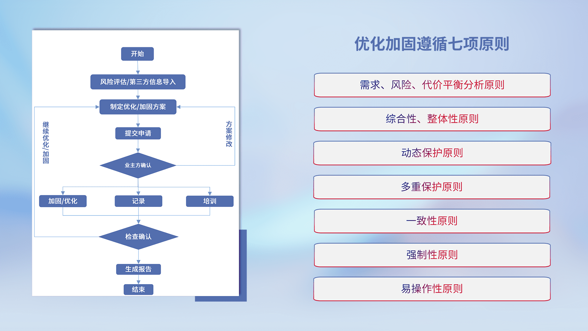 最大程度利用现有资产,,,,对评估发现的问题进行封堵与整改,,,防止漏洞被利用,,提升整体网络安全性,,,,为客户带来高标准的优化加固服务。。