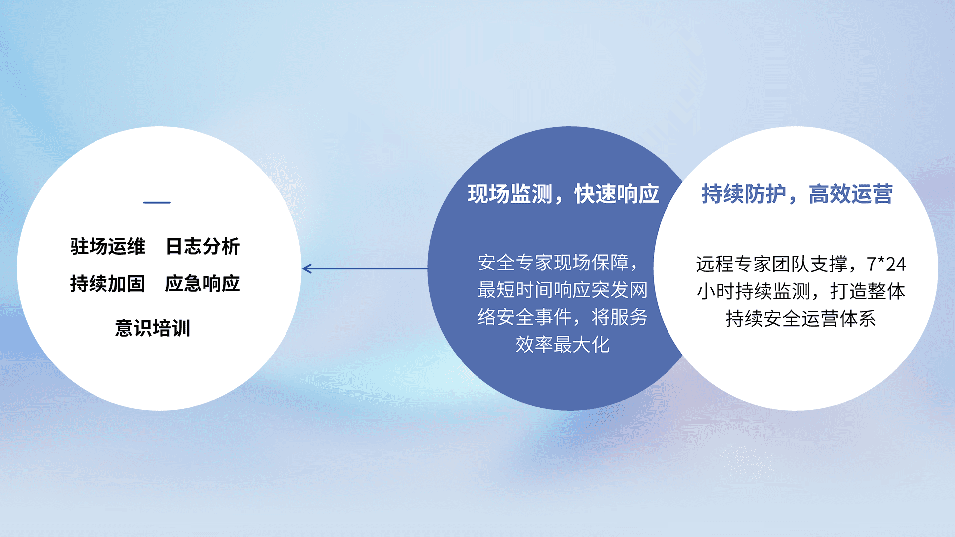 针对客户行业特性,,提供专属的一站式安全管理服务,,,,帮助客户全面感知网络空间威胁,,通过安全专家的线上、、、线下防护支持,,,,实现风险闭环,,,,将安全保障常态化,,为客户打造常态化安全运维运营服务。。。